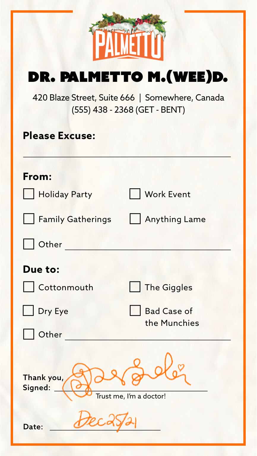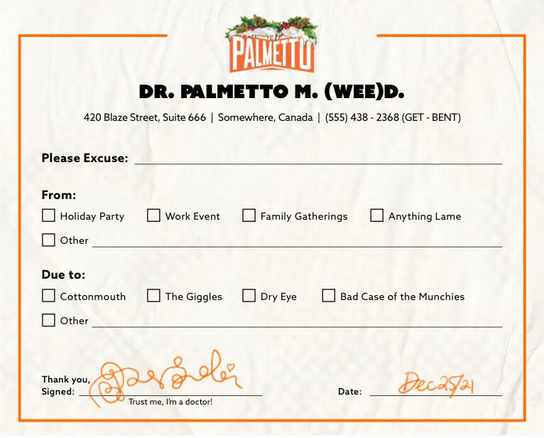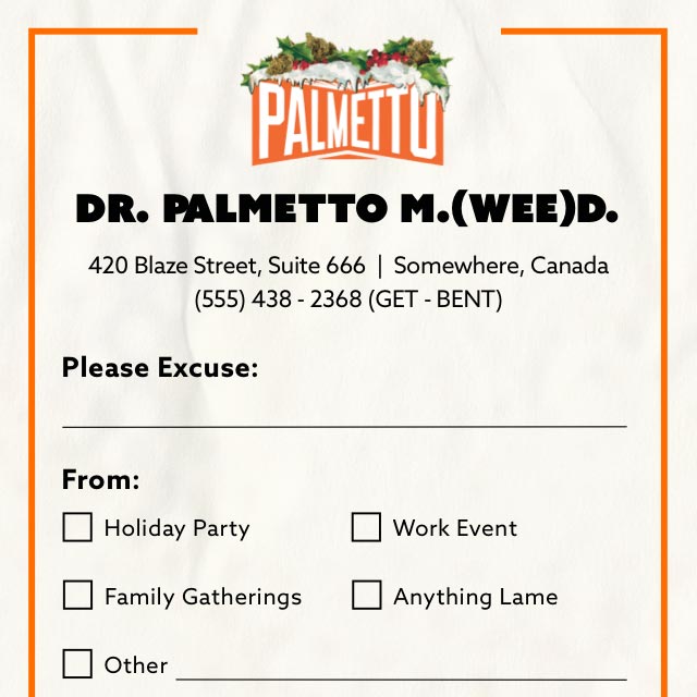 Winner will be contacted by Direct Message on Instagram by @PalmettoCannabis. This giveaway is not sponsored, endorsed or administered by, or associated with Instagram.